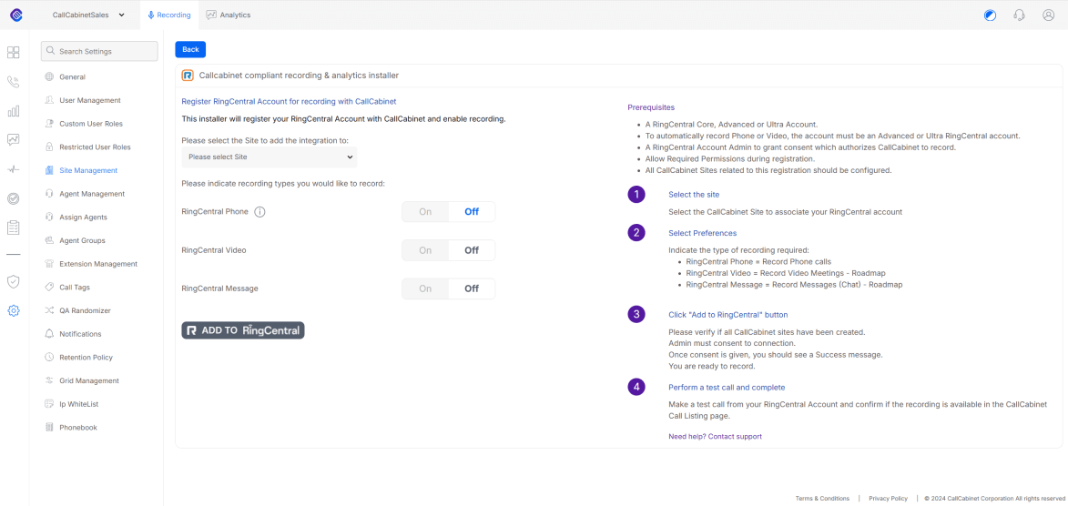 CallCabinet is simple to install and, in the majority of cases, is integrated with a PBX, switch or network. All that is required is for it to be activated. To activate CallCabinet, a Customer ID and Site ID is required, which will be created through the registration process. CallCabinet seamlessly integrates with all major unified communications (UC), IP-PBX and telephony platforms. Please speak to your distributor or reseller about the options available, or contact CallCabinet directly at support.callcabinet.com.