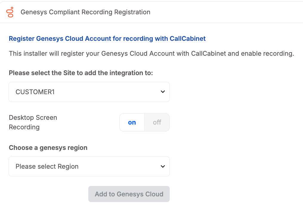 | CallCabinet Agent Client | This is installed directly on the agent’s desktop. This application allows an agent to manually begin a compliance interval, add a note, or add a reference number to a live call. The application is also responsible for recording screenshots of the agent’s desktop whilst on a call. |